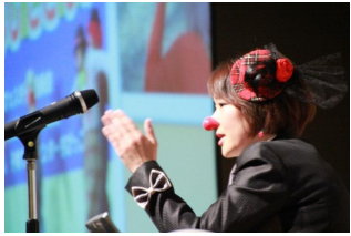クラウン+ポジティブ心理学を組み合わせ、理論と経験に基づくオリジナルメソッドの講演は「安全大会」「社員研修」から「教育講演会」「福祉大会」「看護学校」「自殺予防対策講演会」「PTA講演会」等々、幅広いステージで活躍中。