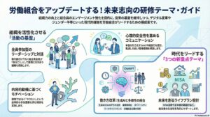 労働組合の教育研修・勉強会は、組合の活性化に不可欠です。時代の変化に対応し、組合員が主体的に参加できるような魅力的な研修を企画することで、より強い労働組合を築くことができます。