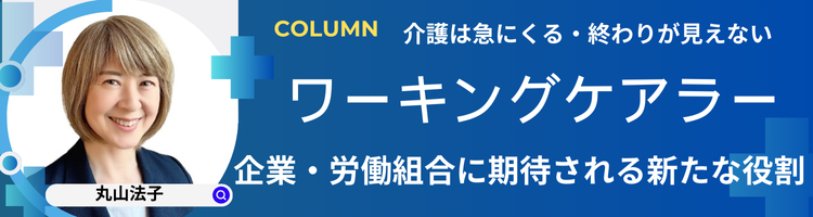 今回、早くからワーキングケアラーに関して問題提起をされているリエゾン地域福祉研究所の丸山法子代表にコラムを書いていただきました。企業人事部門、労働組合執行部は、個人課題と考えずに組織リスクと考えて取り組んで下さい。まずは、社会的な課題として講演会を実施してはいかがでしょうか。