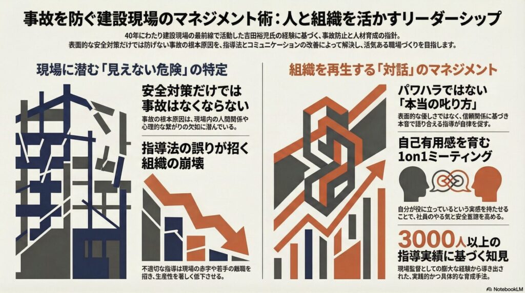 【事故を防ぐ建設現場のマネジメント術】 人と組織を咲かせる人財育成コーチ・叱り方コンサルタント 吉田裕児<よしだゆうじ> 日本組織改革研究所 代表 千葉県出... -